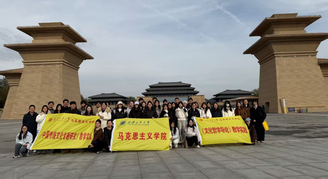 11月17日上午,马克思主义学院2025级研究生在任课教师梁花、黄萌的带领下走出校门,赴陕西历史博物馆秦汉馆开展传统文化专题研学活动。此次活动还特别邀请了学院历史学博士冯晓多老师作为主讲嘉宾。图1:师生们在陕西历史博物馆秦汉馆前步入场馆,“象天法地”的建筑格局令人震撼,展厅内的多元光影组合使厚重的历史文化触手可及。同学们分为两组,分别聆听了冯晓多老师与工作人员的详细讲解,厘清了秦汉政治制度革新、经济繁...