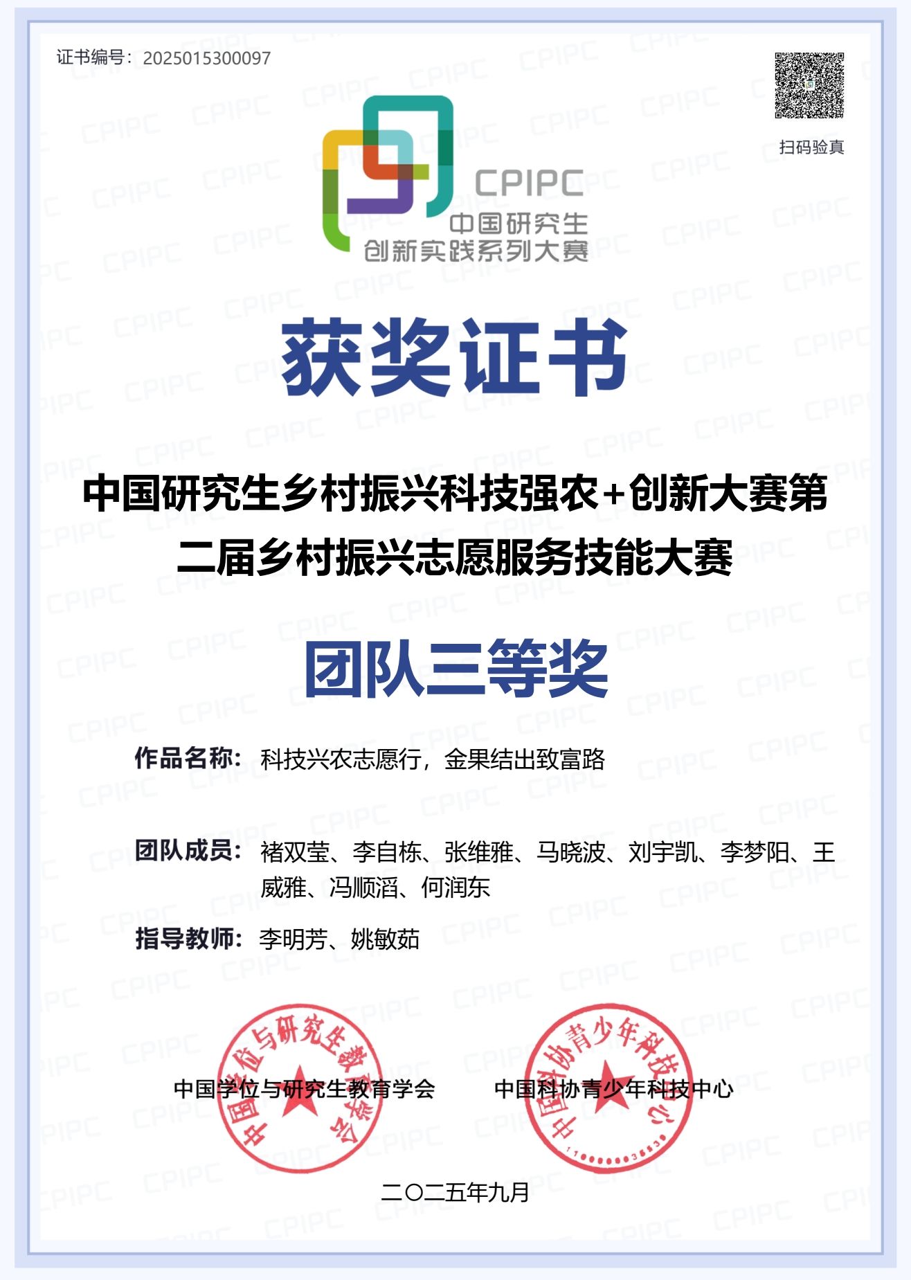 此次获奖是学院研究生培养质量的集中体现,也是推进“产学研用”协同育人的重要成果。未来,学院将以此次大赛为契机,进一步加强研究生实践教学环节,鼓励更多研究生投身乡村振兴一线,将马克思主义理论学习成果转化为服务国家战略、助力地方发展的实际行动。