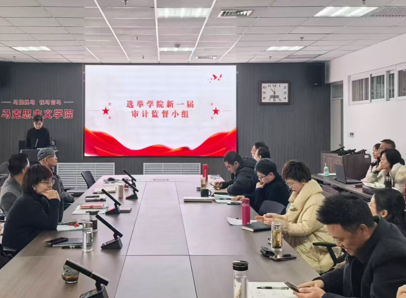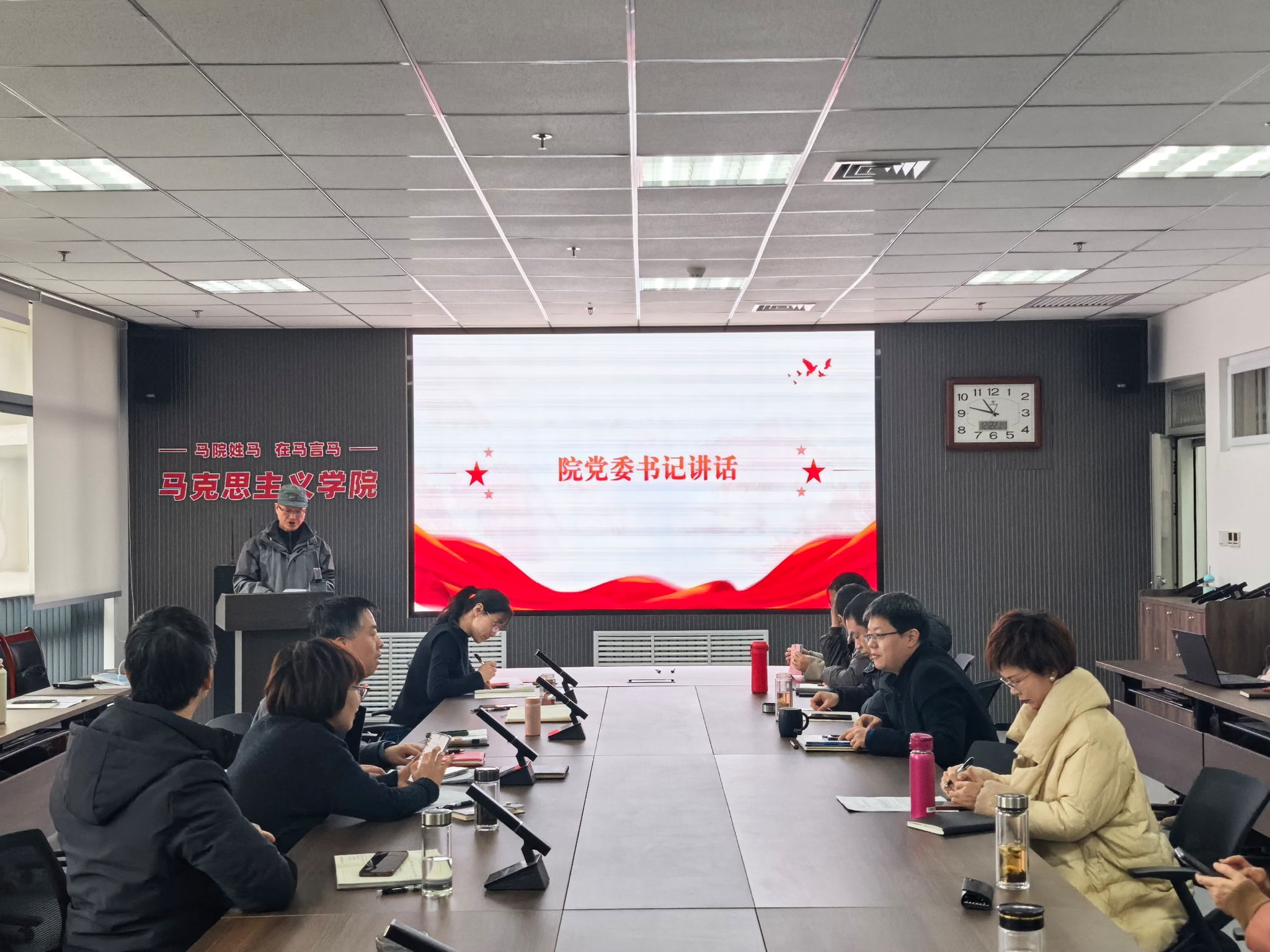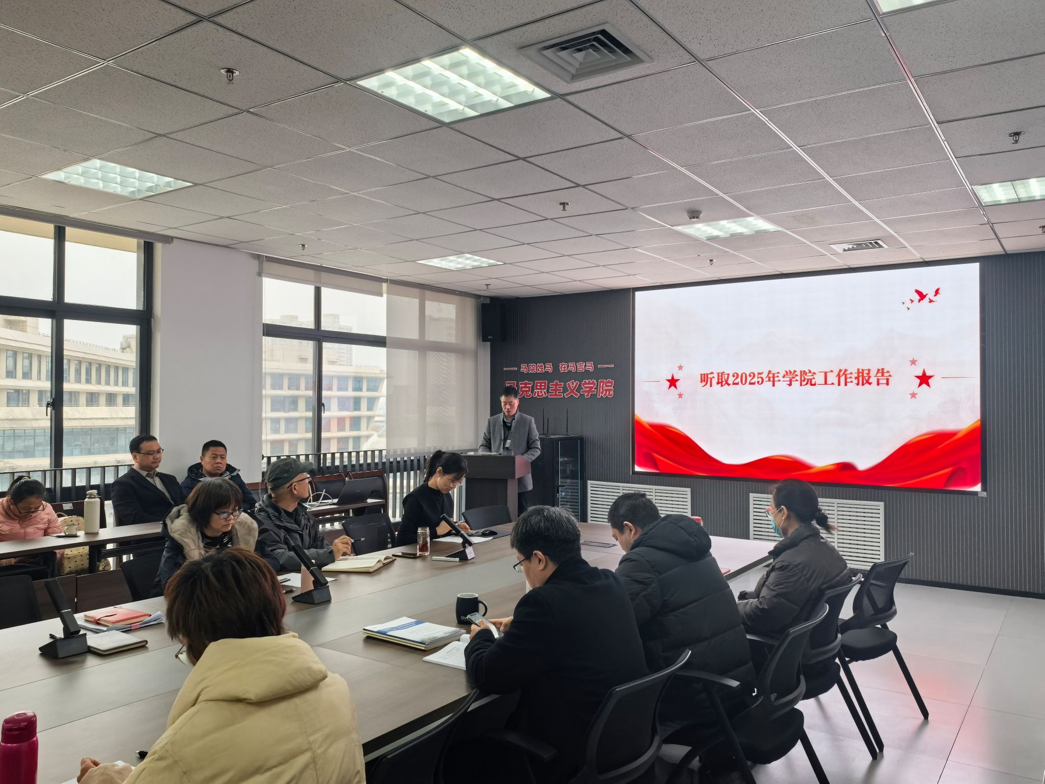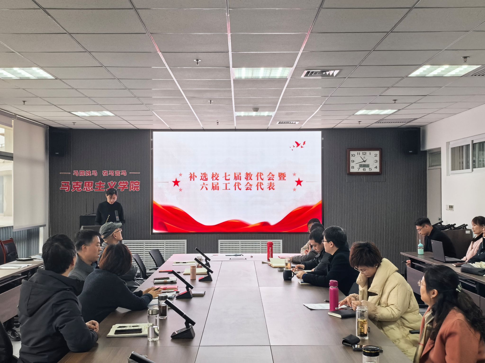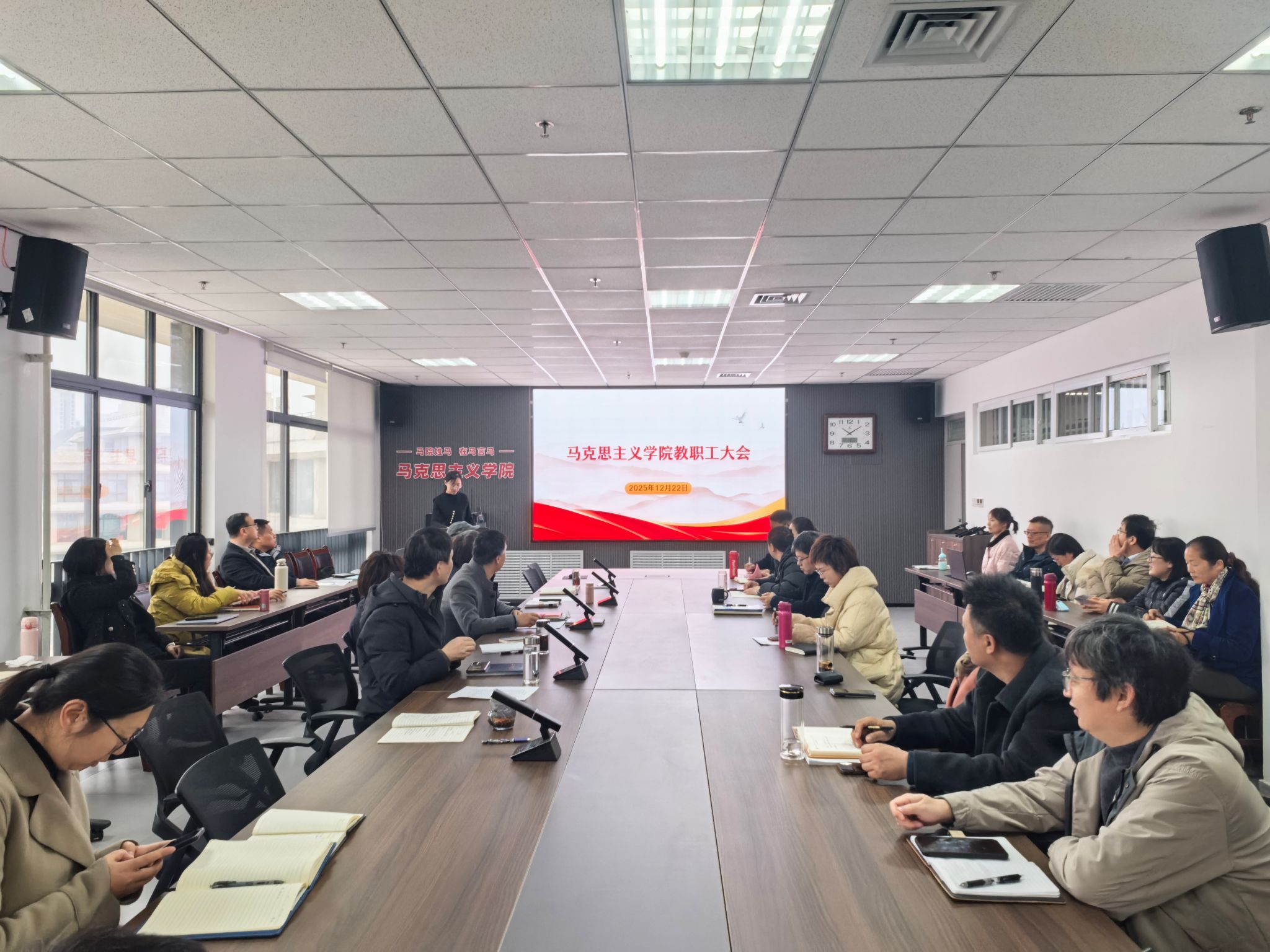 12月22日,马克思主义学院教职工代表大会在教7-514举行,工会主席杨艳主持会议。