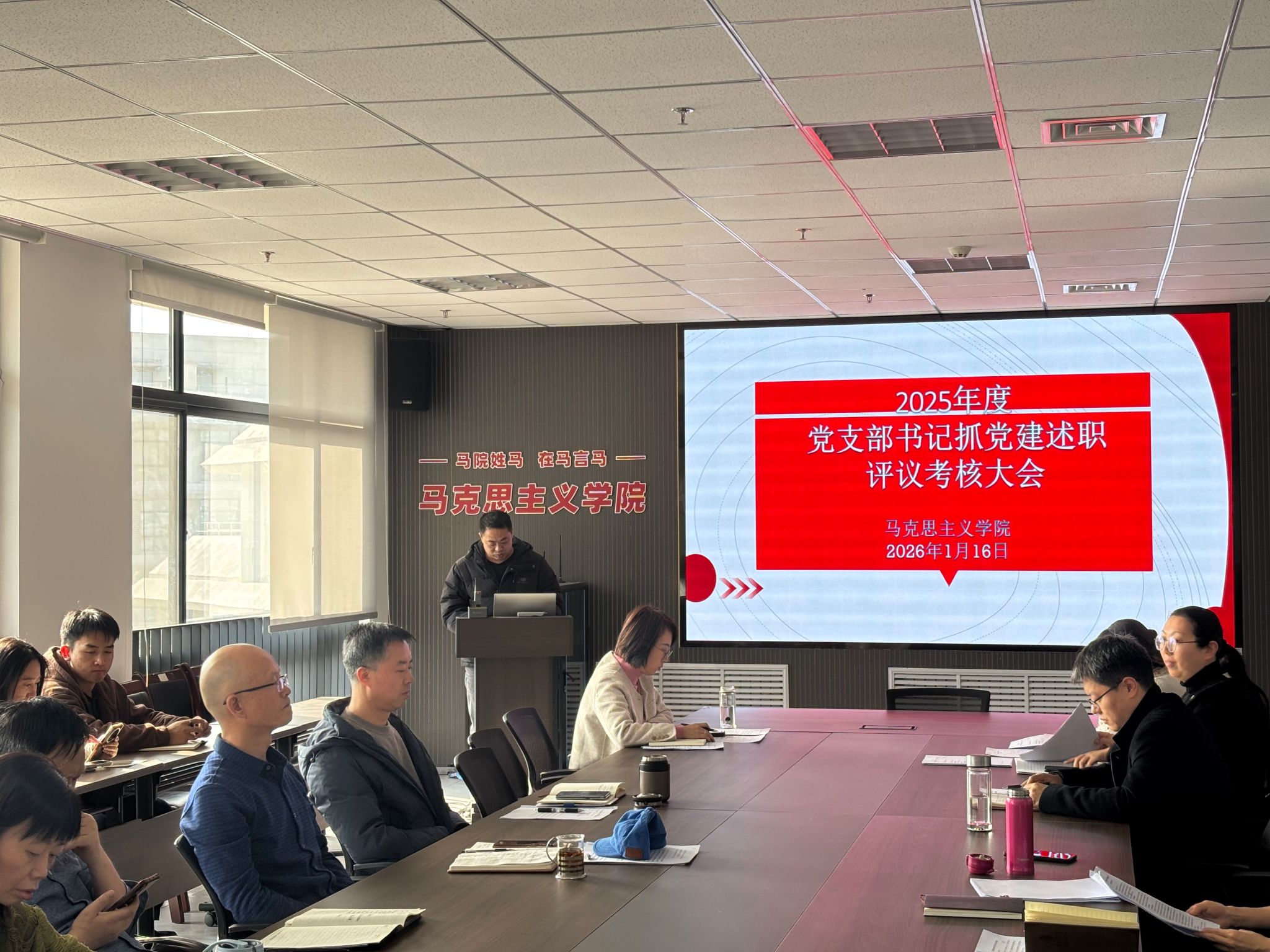 2026年1月16日下午,学院在教七楼514室召开2025年度党支部书记抓党建述职评议考核会。会议由党委副书记程丹主持。