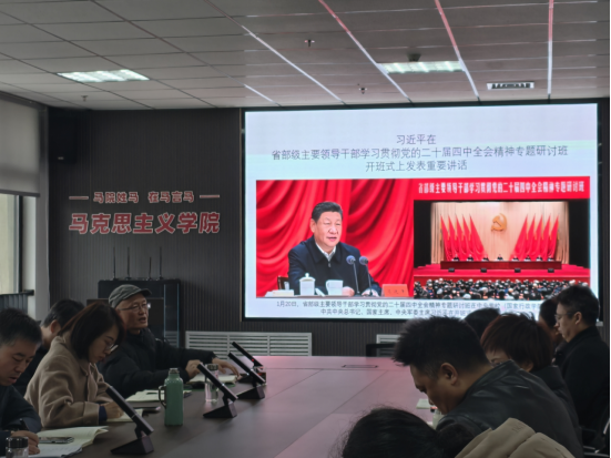 会议传达学习了习近平总书记在省部级主要领导干部学习贯彻党的二十届四中全会精神专题研讨班开班式上的重要讲话精神。会议指出,讲话思想深邃、内涵丰富,对全面深刻领会和把握党的二十届四中全会精神具有重要指导意义。提高政治站位,坚定制度自信,制定好实施好学院“十五五”规划,确保学校全面深化改革各项措施落地见效。要围绕目标责任制强化担当作为,切实提高教学科研能力和治理水平,推动省级重点马克思主义学院建设。