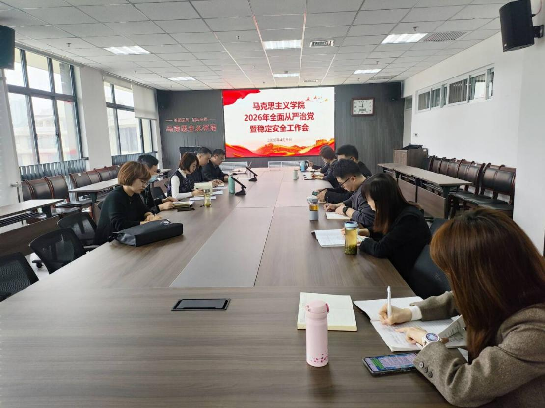 为深入学习贯彻习近平总书记在二十届中央纪委五次全会上的重要讲话精神,全面落实学校党委关于全面从严治党与稳定安全工作的决策部署,4月9日,马克思主义学院在教7-514会议室召开党委扩大会议,专题安排部署学院2026年全面从严治党与稳定安全工作。会议由学院党委书记朱峰主持,党委委员、各党支部书记参加会议。