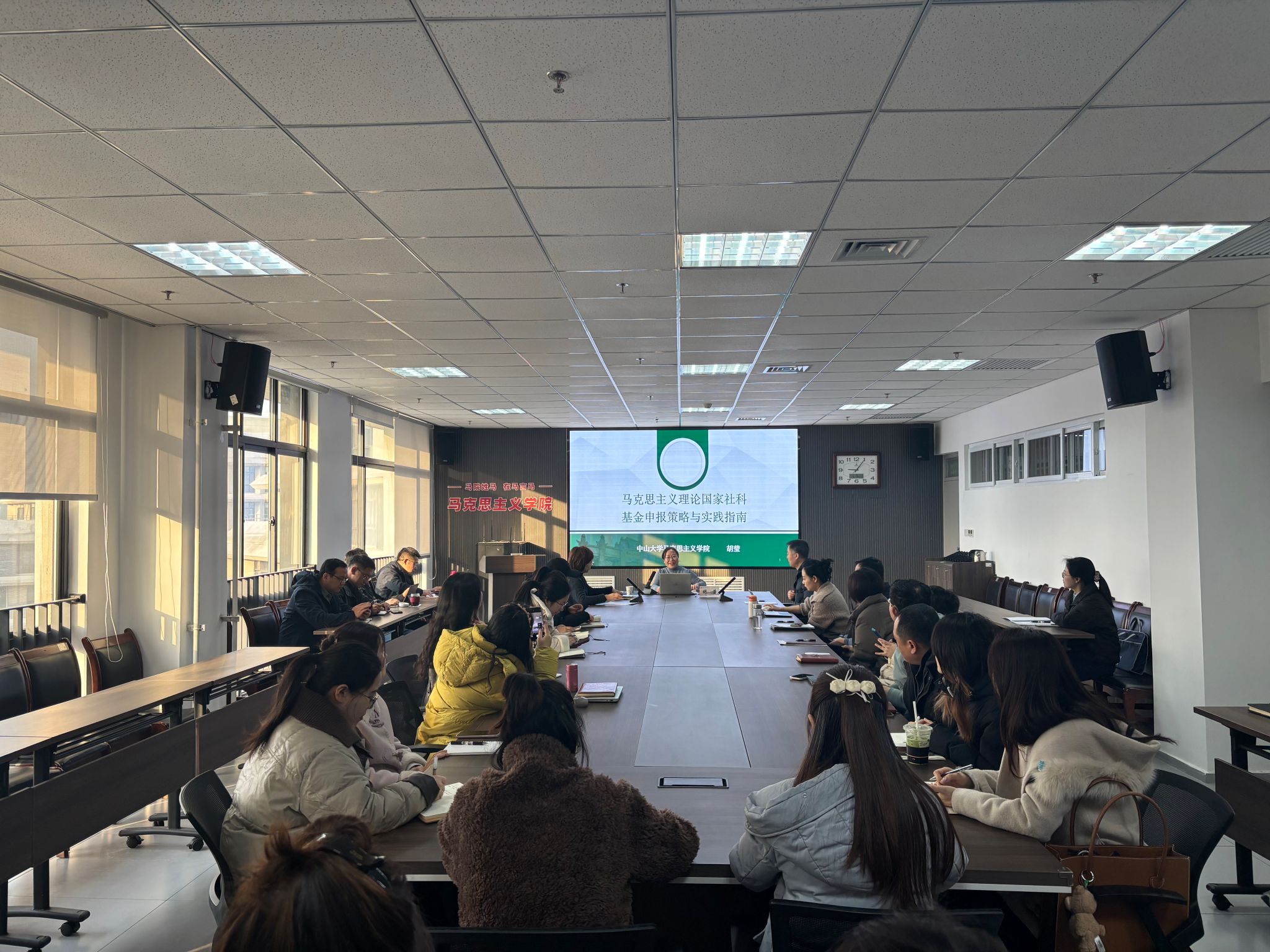 为扎实推进2026年国家社科基金项目申报工作,全面提升学院国家级科研项目的申报质量与立项成功率,1月16日上午,马克思主义学院在教七楼514会议室举办国家社科基金项目申报选题指导交流会。本次会议特邀教育部青年长江学者、国家社科基金重大项目首席专家、中山大学马克思主义学院胡莹教授主讲,会议由学院副院长张敏教授主持,院长梁华平及马克思主义学院2026年国家级基金项目申报教师参会,校内其他部门青年教师也参与了此次会议。